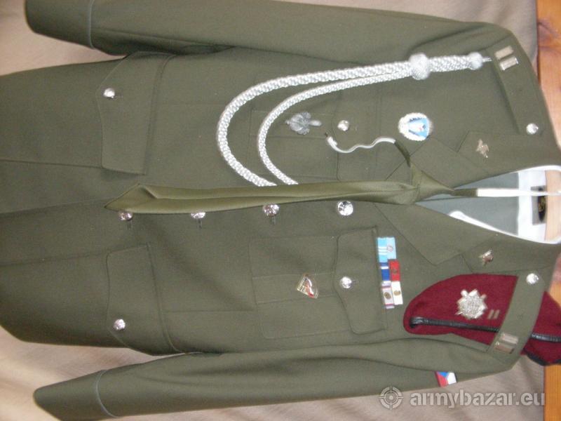 Popis: Prodám uniformu vz.97 v hodnosti nadrotmistra výsadkového vojska. Uniforma je kompletní s baretem červeným,bílá košile,kalhoty vz 97 světlé dále hodnostní označení (nové) a označení příslušnosti vojska (stříbrné padáčky),kravata, odznak válečný veterán, vojenská akademie,výsadkář-řada stříbrný,stuhy: darce krve sbronz až zlato, bosna SFOR,NATO,V.let služby. Velikost saka je 188-100-88 kalhot 182-000-94 Vše pouze na sportovní postavu vel 185 cm. Uniformu jen jako celek a o ceně nesmlouvám !